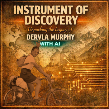 Dervla Murphy has long fascinated host Gabriel Aldaz, who years ago had picked up her first and most famous book, Full Tilt. The intrepid travel writer from Ireland died in 2022 at the age of 90, but Gabriel has remained curious to learn more about her. For this experimental episode, he goes into his laboratory and produces an AI-assisted retrospective on Dervla’s fascinating life. Dervla did not merely traverse the globe; she sought to understand humanity through a lens of radical vulnerability. Having stayed at home in Lismore to care for her invalid mother for nearly two decades, Dervla famously cycled full tilt from Dunkirk, France to India in 1963 on a single-speed bike, first during a brutal European winter and then over the Himalayas – while packing a .25 caliber pistol to fend off hungry wolves, highway thieves, and even a male assailant. Later, she trekked across remote landscapes with her young daughter Rachel, embracing their defenselessness as a necessary bridge to authentic human connection. Her later books reflected her deep immersion in conflict zones, from Northern Ireland at the height of the Troubles to Rwanda in the aftermath of the genocide. Dervla’s legacy includes a body of work – more than 20 books primarily about travels by bicycle, on foot, or atop beasts of burden – that serves as a testament to her resilience and her commitment to recording authentic, day-to-day interactions across diverse cultures.
